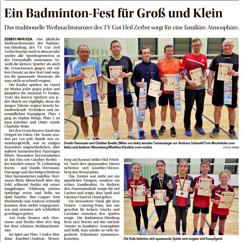 Traditionell begaben sich die Mitglieder der Abteilung Badminton des TV Gut-Heil Zerbst kurz vor Weihnachten auf das Badmintonparkett.