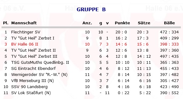 - BV Halle 06 II – TV „Gut Heil“ Zerbst III 2:1 (15:21 / 21:16 / 21:10)